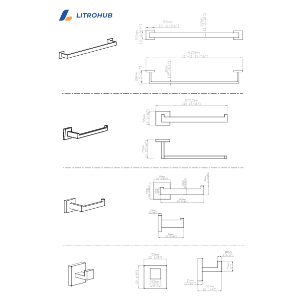 Bathroom Accessories Robe Hook + Paper Holder + Towel Holder + Towel Bar